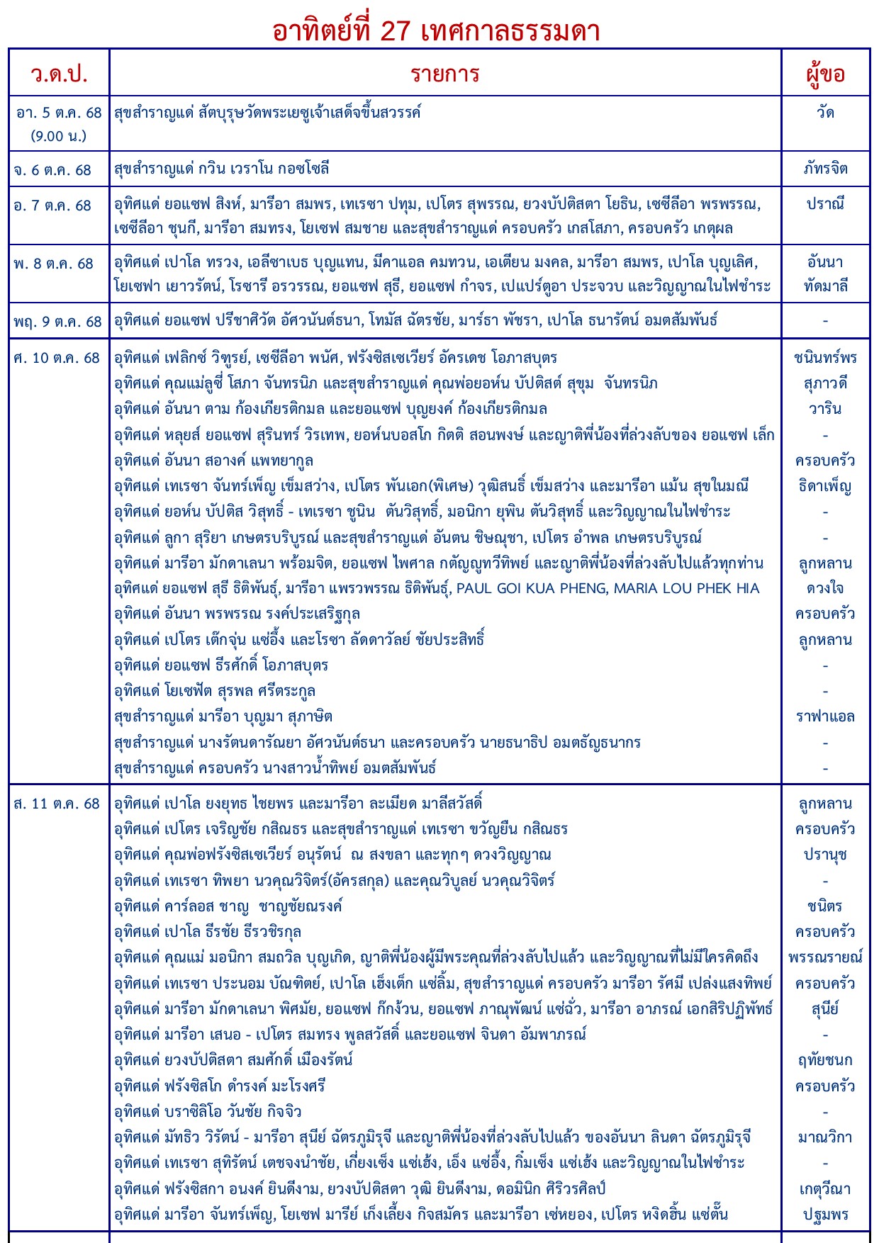 อาทิตย์ที่ 27 เทศกาลธรรมดา ฉบับวันอาทิตย์ที่ 5 ตุลาคม 2025