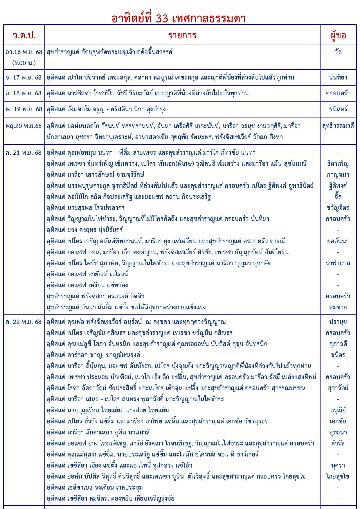 อาทิตย์ที่ 33 เทศกาลธรรมดา ฉบับวันอาทิตย์ที่ 16 พฤศจิกายน 2025