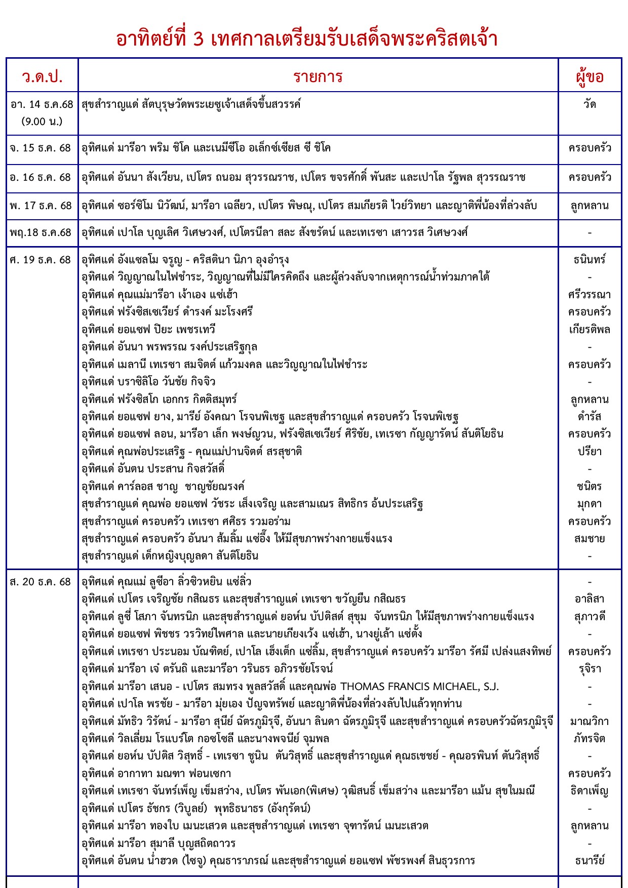 อาทิตย์ที่ 3 เทศกาลเตรียมรับเสด็จพระคริสตเจ้า ฉบับวันอาทิตย์ที่ 14 ธันวาคม 2025