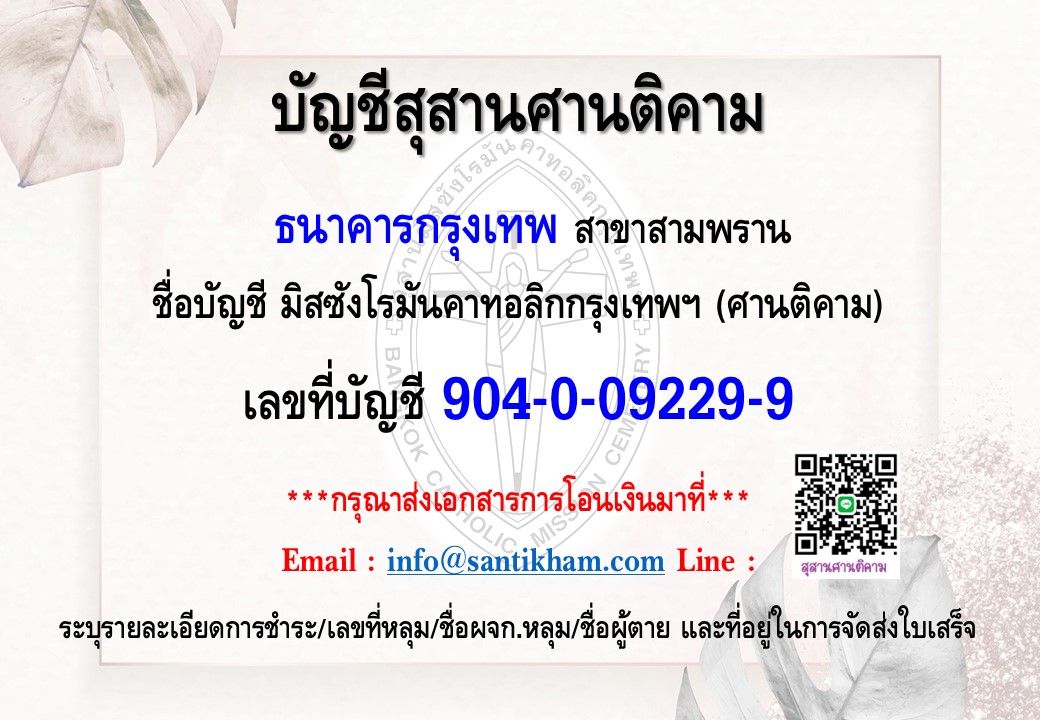 Copyright © 2009 ศานติคาม สุสานมิสซังโรมันคาทอลิกกรุงเทพ ฯ Visitors: Since 10-10-2009