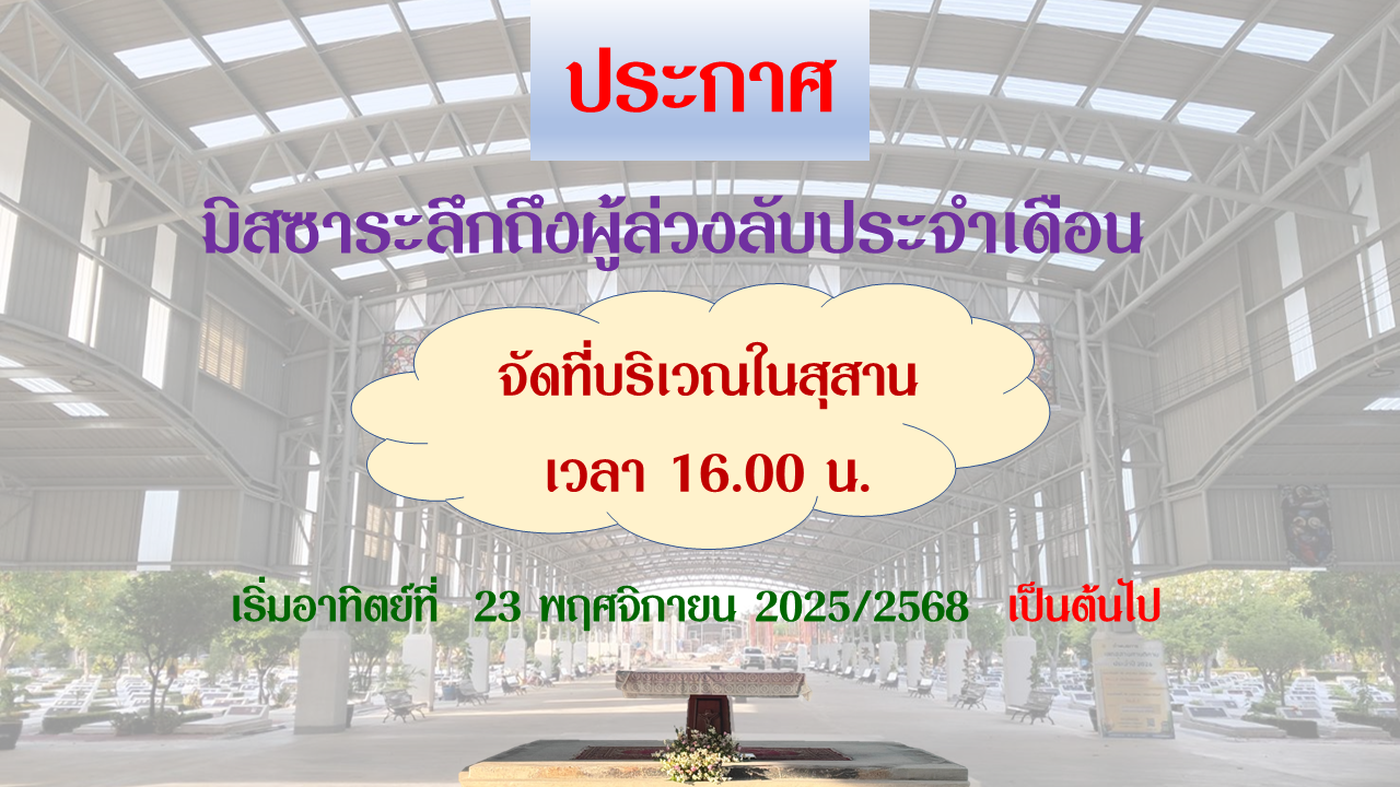ขอคำภาวนาเพื่อผู้ที่บรรจุศพในเดือนพฤศจิกายน 2025