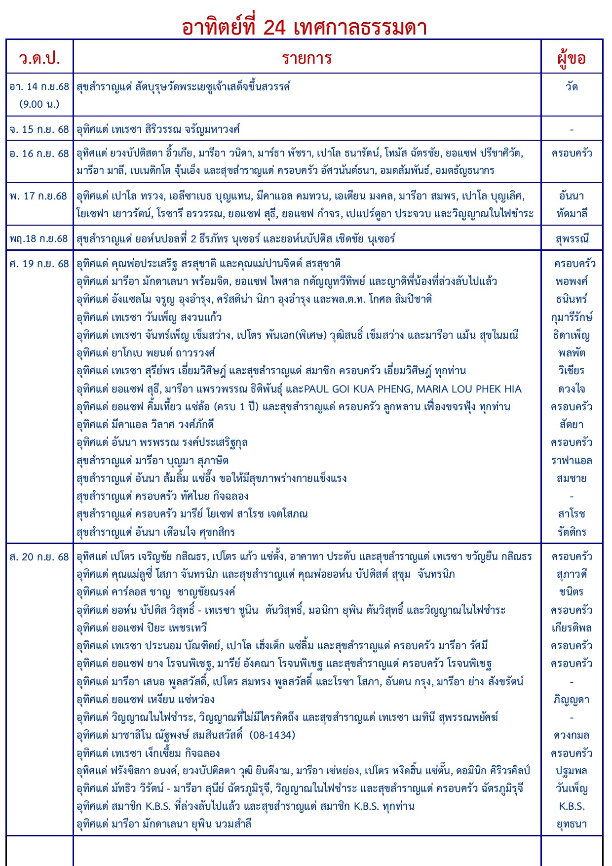 อาทิตย์ที่ 24 เทศกาลธรรมดา ฉบับวันอาทิตย์ที่ 14 กันยายน 2025