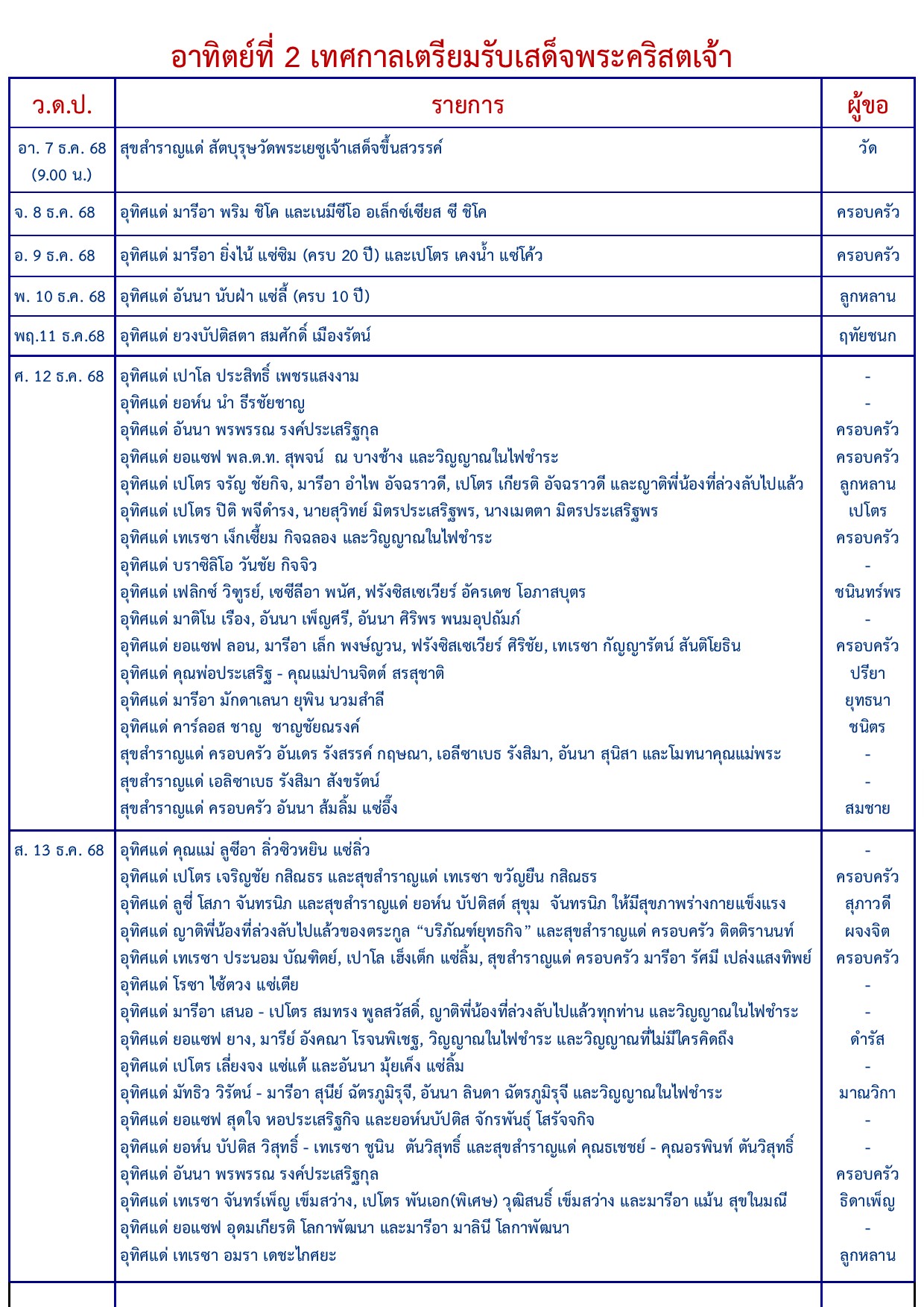 อาทิตย์ที่ 2 เทศกาลเตรียมรับเสด็จพระคริสตเจ้า ฉบับวันอาทิตย์ที่ 7 ธันวาคม 2025