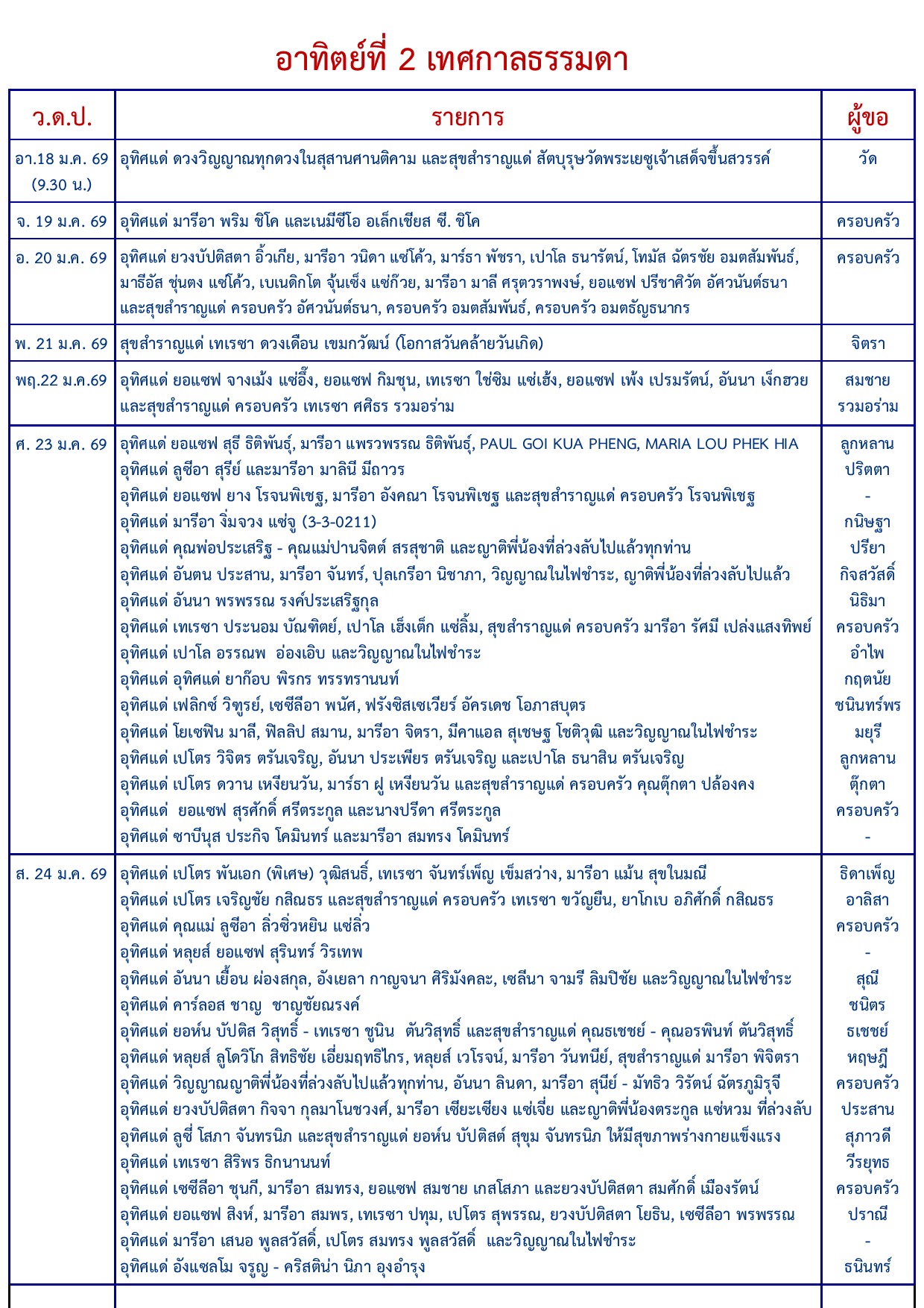 อาทิตย์ที่ 2 เทศกาลธรรมดา ฉบับวันอาทิตย์ที่ 18 มกราคม 2026